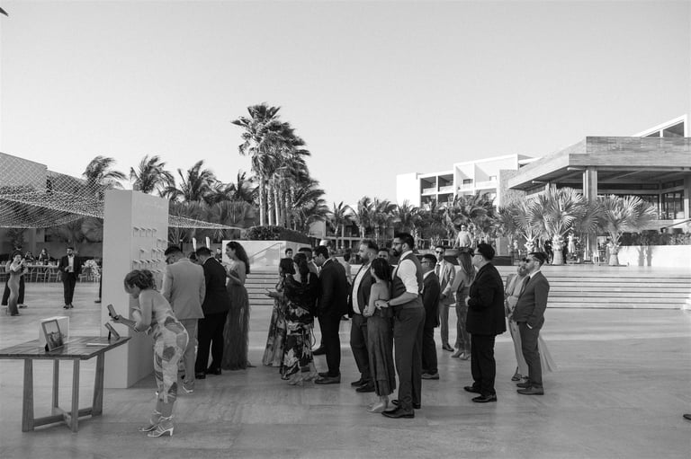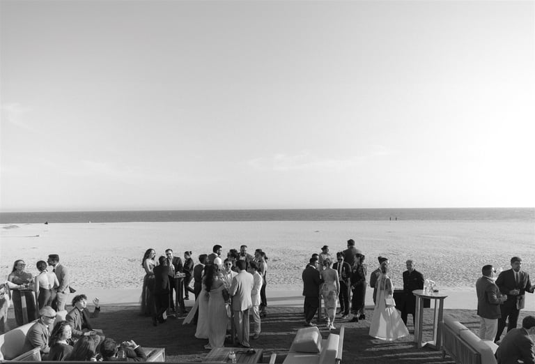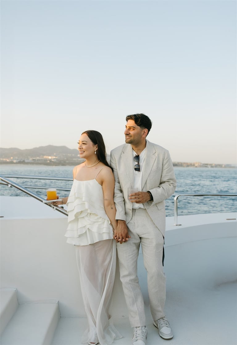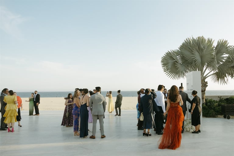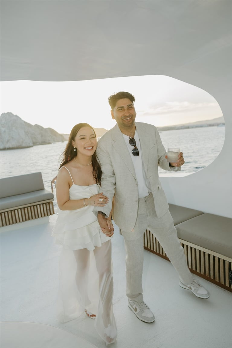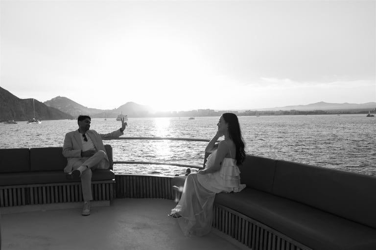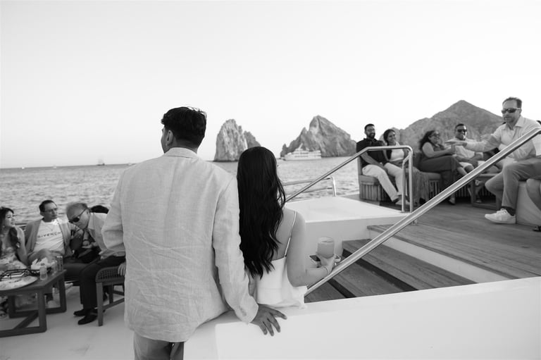 The weekend began with a welcome boat gathering at the Marina in Cabo San Lucas. Surrounded by sea breeze, music, and their closest friends, Samantha and Rohan toasted to everything ahead — a calm and joyful prelude to the story about to unfold.