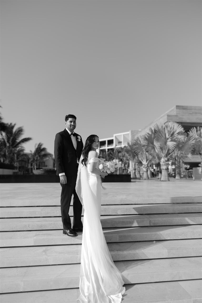 Welcome to Samantha & Rohan’s wedding — a celebration of quiet elegance and intentional beauty, set against the raw, minimal backdrop of Nobu Los Cabos. Intimate by design, this day was less about perfection, and more about presence. From fashion-forward details to the soft golden light that kissed every frame, it unfolded with a kind of ease only love can bring.